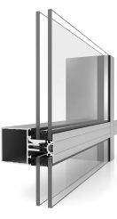 Полуструктурное остекление. Этот вариант сочетает надежность стоечно-ригельного остекления с визуальной легкостью структурного. Здесь стекло крепится к профилю тонкими прижимными элементами, минимально закрывающими его. В отличие от полностью структурного остекления, система позволяет использовать большие стеклопакеты и встраивать открывающиеся элементы.